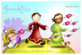 Un joven rico buscó a Jesús y le preguntó cómo llegar al Cielo, si ya desde muy joven cumplía con los mandamientos. Jesús le respondió que no bastaba, que debía hacer algo más: desprenderse de su dinero, dárselo a los pobres y seguirlo. Jesús le está pidiendo al joven que le dé a Dios el lugar a que merece en su vida: el primero. Que se libere del amor al dinero y que ponga toda su esperanza en Dios. ¿Es que ser rico es malo?